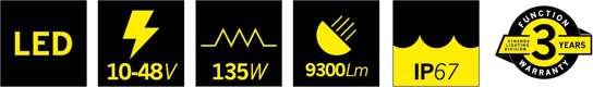 - Functions High-beam, white position light , amber position light, logo light