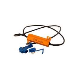 A power resistor installed to increase the power consumption of an LED bulb. For example, if the turn signal flashes rapidly after replacement. It can also be used after replacing the brake light bulb (21W), fog bulb, etc. Use with maximum 50 W. 24 V only.