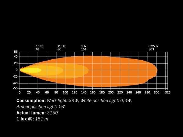 - Consumption specific function White position light: 0,3W, Amber position light:1W